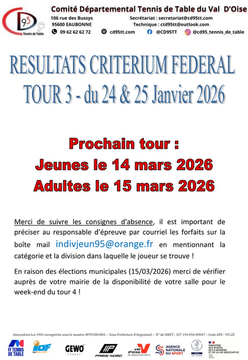 09/02/2026 – Résultats Critérium Fédéral 3ème tour