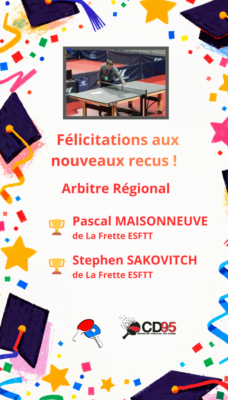 10/03/2026 – Nouveaux reçus Arbitre Régional
